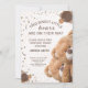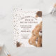 Invitation charmante pour la baby shower de vos jumeaux avec "Deux petits ours adorables sont en route" dans des couleurs crème et marron pastel présentées dans un style bohème et une écriture moderne.
