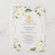 Elégant design de carte avec aquarelle délicate fleurs blanches et feuilles verts, un faux chalice brillant or, cadre polygonal croisé et or, sur un arrière - plan de papier aquarelle. Sur le dos bouquet de fleurs blanches, chalice or et initiales. Utilisez l'outil Personnaliser pour ajouter vos informations, modifier les polices, les couleurs de la police. Pour les articles correspondants, s'il vous plaît, visitez ma collection d'événements religieux de charme.