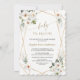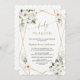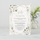 Elégant design de carte avec des fleurs blanches d'aquarelle et des feuilles verts, un cadre faux or, sur un arrière - plan blanc. Sur le dos, une cloison fleurie. Utilisez l'outil Personnaliser pour ajouter vos informations. Pour les articles correspondants, s'il vous plaît, visitez ma collection de Fleurs blanches délicates.