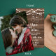 Un faire-part de mariage parfaitement rustique, avec des cordes de lumières, des jarres de maçon et un arrière - plan en bois. Une photo de la future mariée et mariée orne le dos de l'invitation.