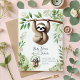 Célébrez l'arrivée prochaine d'un petit garçon avec cette délicieuse invitation au baby shower paresseux. Doté d'une douce aquarelle illustrant un bébé paresseux accroché à une branche d'arbre, entouré de verdure douce et d'accents floraux, ce design est parfait pour un baby shower d'inspiration nature ou boisée. La mise en page personnalisable vous permet de personnaliser les détails pour une invitation unique et mémorable.