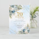 Invitation Charming boho blue florals gold frame 70th birthda
