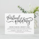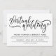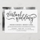 Charmant faire-part de mariage virtuel pour votre mariage longue distance avec un script de brosse noire avec un coeur remplaçant le point sur le i en mariage. Ajoutez vos informations et votre libellé mariage dans les polices noires élégantes.