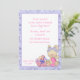 Cute invitation de Pâques avec corbeille de lapin et de panier rose d'oeufs de Pâques et bordure fleurie violette. L'invitation peut être customisée pour la chasse aux oeufs de Pâques, les petits déjeuners de Pâques, etc. Les invitations sont accompagnées d'enveloppes et de votre choix de papier.