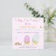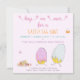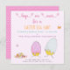NewParkLane - Invitation personnalisée à la chasse aux oeufs de Pâques, avec "Hop on over" dans une jolie typographie avec des papillons, deux mignonnes poussins de Pâques juste sortis de leurs coquilles d'oeufs en rose pastel et violet et une en bleu doux. Avec un joli petit papillon orange et rose, et de jolies petites fleurs aux couleurs pastel. L'arrière dispose d'un motif polkadot rose et blanc chaud. Facile à customiser à Zazzle avec votre propre texte pour un design personnalisé. Tous les styles, couleurs et tailles de texte peuvent être modifiés selon vos besoins. Consultez cette collection pour les articles correspondants. Avez-vous des souhaits particuliers en matière de design personnel? N'hésitez pas à me contacter !
