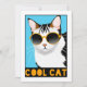 Cette illustration de dessin animé simple et ludique présente un chat avec le texte "CAT COOL" affiché en gras et en orange en bas. Placés contre un arrière - plan bleu, les oreilles du chat sont clairement visibles en haut de l'image, bien que la partie centrale du visage soit partiellement floue. Le design lumineux et amusant capte une ambiance fantaisiste et légère, parfaite pour les amateurs d'art gai et décalé.