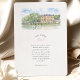 The coordinating back continues the story with a tranquil lakeside vignette: the château is seen from across the water, framed by rows of manicured trees and clipped topiary that reflect in the glassy surface of the pond. Above the customizable “Finer Details” text, the loose watercolor edges and gentle color transitions capture the romantic atmosphere of a French countryside garden. All text is fully editable, making this suite ideal for château weddings in France, European destination celebrations, or any couple who loves stately architecture and classic French garden design rendered in a soft, painterly style.