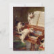 Carte représentant la peinture à l’huile de Carl Reichert Le considérant des chatons (1836-1918). Cinq adorables chatons noirs et blancs sont assis au sommet d'un piano. Un cadeau fantastique pour les amoureux de les chats et les amateurs d'art victorien.