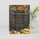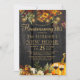 Belles fleurs automnales rouillées et bordeaux foncé et bordures citrouilles avec cordes de lumières scintillantes dorées sur un arrière - plan de grange brun foncé faisant une invitation à la soirée barbecue au chaud domestique avec une écriture manuscrite manuscrite script de typographie or. ++++++++++ Facile à personnaliser avec vos détails ! Convient pour l'automne rustique ferme de campagne de l'automne jardin extérieur fêtes, ou barbecues.