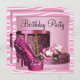 Elégante crème léopard haute talon chaussures rose et noir invitations à la fête d'anniversaire. Cette invitation de fête d'anniversaire rose zèbre fonctionne bien pour toute fête d'anniversaire de fille ou de femme ou d'événement. Personnalisez-le pour votre fête ou événement en choisissant simplement le bouton "Customisez-le !" pour commencer à ajouter vos détails d'événement, le style de police, la taille et la couleur de police et le libellé à l'avant et à l'arrière.