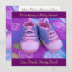 La coutume rose de BABY SHOWER de bébé de chaussures d'invitations douces précieuses de baby shower ajoutent votre texte, cartes roses d'invitation de baby shower de chaussures de tennis de bébé, cartes de faire-part de bébé.