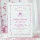 Salue à l'invitation de fête d'anniversaire de 21 ans. Deux verres de vin et un sprig botanique accentuent le texte simple. Le tout est entouré d'un cadre de gribouillis rose. Moderne et minimaliste, cette invitation rose est très en vogue pour le printemps et l'été 2025.