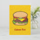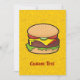 Illustration de dessin animé Cheeseburger. Les aliments indésirables entourent les icônes jaune motif arrière - plan. Texte personnalisé des deux côtés.