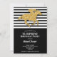 Les invitations pour les fêtes d'anniversaire comportent un cheval de course de parties scintillant en or faux sur des rayures noires et blanches en haut et noir en bas pour obtenir des informations sur votre fête. CORRESPONDRE des articles dans notre magasin.