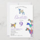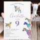 Collection d'illustrations colorées de chèvre d'aquarelle en rose vif, violet, bleu, orange, jaune et aqua. Un animal agricole mignon invitation à la fête du 9e anniversaire avec des chèvres et des chèvres debout sur des chèvres. Cette invitation amusante à la fête est facile à personnaliser pour créer une invitation unique à la fête adaptée aux enfants et aux amateurs de chèvre adulte. Colorful rose thème psychédélique chèvre illustrations originales par l'artiste Catherine Sweetman