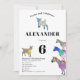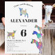 Une collection de chèvres colorées et amusantes en rose vif, violet, bleu, orange, jaune et aqua. Un joli animal de ferme 6e anniversaire invitation de fête avec des chèvres et des chèvres debout sur des chèvres. Cette invitation amusante à la fête est facile à personnaliser pour créer une invitation unique à la fête adaptée aux enfants et aux amateurs de chèvre adulte. Chèvre psychédélique colorée illustrations originales de l'artiste Catherine Sweetman