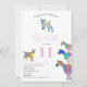 Une collection de chèvres colorées, mignonnes, en rose vif, violet, bleu, orange, jaune et aqua. Une invitation pour la fête du 11e anniversaire d'animaux de ferme mignons avec des chèvres et des chèvres debout sur des chèvres. Cette invitation amusante à la fête est facile à personnaliser pour créer une invitation unique à la fête adaptée aux enfants et aux amateurs de chèvre adulte. Colorful rose thème psychédélique chèvre illustrations originales par l'artiste Catherine Sweetman