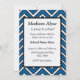 Fêtez le déménagement de votre enfant à l'université avec cette invitation de motif chevron bleu, noir et blanc.