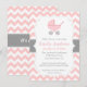 Invitation Chevron rose et blanc, poussette, douche de bébé