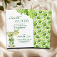 An elegant modern design featuring a watercolor illustration of a lime martini with green olives, tied with a green bow and a cute lime pattern on the back. Customize the details for a unique and chic Birthday Celebration.