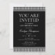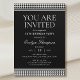 Annoncez votre événement avec style avec cette invitation chic et élégante à la fête. Un design inspiré de la mode, avec le motif emblématique en houndstooth, associé à des rayures contrastées et à la typographie classique. Parfait pour organiser une fête d'anniversaire, un anniversaire, un dîner, un déjeuner ou un cocktail ! Couleurs : noir et blanc. Disponible sous forme d'invitation imprimée ou de téléchargement numérique.