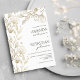 Une élégante faire-part de mariage à thème floral en dentelle dessinée à la main, blanche et dorée.