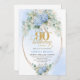 Invitation Chic Blue Floral Eucalyptus Gold 90th Birthday