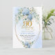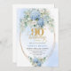 Invitation Chic Boho Blue Hydrangea Floral Gold 90th Birthday