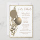 Cette invitation au design chic présente des ballons de fête en bronze et or ainsi que de fausses paillettes. Personnalisez ce modèle d'invitation avec les détails de votre fête d'anniversaire.