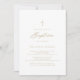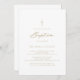 Cette invitation au baptême d'or de calligraphie chic est parfaite pour un baptême de bébé rustique ou pour le baptême. Le design sobre et élégant présente une typographie de script classique et sophistiquée en or.