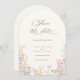 Chic boho simple wildflowers Wedding Save the Date with green calligraphy
