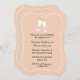 Invitation élégante de partie de fiançailles faite en pêche pâle, avec des graphiques de deux verres de champagne de grillage, au dessus de l'invitation, et un cadre décoratif blanc autour du bord. Le texte dans le noir est prêt à personnaliser pour votre partie. Jolie invitation que n'importe quels couples aimeraient.