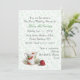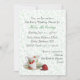 Invitation douce de wedding shower de thé faite dans une conception florale verte de cottage et blanche minuscule chic. Les graphiques d'une jolies tasse et fraise de thé de porcelaine décorent en bas à gauche le faisant le coin de cette invitation de regard élégante. Personnalisez tout le texte pour adapter à vos besoins de partie.