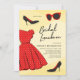 Chic invitation à déjeuner nuptiale avec robe de pois rouge à la mode, lunettes de soleil rouges et une paire de talons sombres contre un arrière - plan géométrique orange clair moderne. L'invitation a un pois noir et blanc. Personnalisez cette invitation avec vos détails en remplaçant le texte de l'espace réservé. Pour plus d'options comme changer la police, la taille/la couleur du texte ou l'espacement entre les lettres, cliquez sur le bouton "Personnaliser". *Veuillez noter que le filigrane Zazzle qui apparaît dans l'aperçu du zoom n'apparaîtra PAS sur le produit imprimé final. © Bois de rose et agrumes