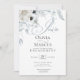 Un spray d'élégantes fleurs de pivoines d'ivoire crème et d'anémones bleu pâle qui fleurissent du haut. Bleu poussiéreux sur blanc. La calligraphie de script chic décrit 'Join' avec des détails d'invitation dans une police contemporaine moderne. L'inverse se fait dans un bleu poussiéreux gratuit. Conception créée pour BarefootBride™ par © WhimsicalArtwork™ Personnaliser texte, style de police, couleur et taille. Nous avons créé ce modèle pour vous faciliter la personnalisation avec vos propres informations. Cela fait partie d'une suite de papeterie mariage coordonnée.