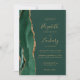 Le bord gauche de cette élégante faire-part de mariage moderne est orné d'une bordure en aquarelle vert émeraude, recouverte d'une parties scintillant en faux or. Le texte personnalisable combine écriture manuscrite couleur or, copperplate et polices italiques sur un arrière - plan vert émeraude. L'envers est assorti d'une agate vert émeraude et or.