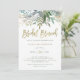 Ces élégantes invitations minimalistes au brunch des mariées sont décorées de verdure à l'aquarelle branchée et de feuilles botaniques sur un arrière - plan blanc épuré avec un script manuscrit moderne et faux or.