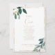 Ce chic tableau feuillu numéro 1 est parfait pour un mariage rustique. Le design présente un feuillage vert d'eucalyptus ornant un cadre géométrique doré. La carte imprime recto verso (recto verso)