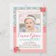 Cette invitation chic minable de fête d'anniversaire comporte un arrière - plan floral vintage et des roses dans des tonalités roses et de bleu/aqua, avec des accents de point de polka et de rayure. Cette invitation est parfaite pour la fête d'anniversaire chic de n'importe quelle fille et chérie minable.