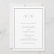 Ces invitations de mariage élégantes et modernes présentent un design de texte minimaliste blanc simple, avec du texte vert sage et un cadre classique à la frontière. Ajoutez vos initiales ou votre monogramme pour les rendre complètement vôtres.