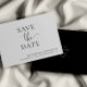 Annoncez votre prochain mariage avec cette carte de faire-part minimaliste. Cette carte présente un texte simple et un thème noir et blanc. Customisez le texte à l'avant et à l'arrière de la carte pour partager les détails de votre prochain mariage. Visitez mon magasin pour voir d'autres options de couleur pour correspondre à vos couleurs mariages. #minimalistmarrinoce #savethedate #weddingplanning