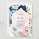 Le design présente un élément floral imprimé de couleur bleu marine, bleu poussiéreux et rose vif, avec un arrière - plan en toile d'aquarelle. Calligraphie ou écriture type avec l'illustration de conception. Il s'agit d'une pièce de collection mixte et de correspondance. Idéal pour vos célébrations mariages !