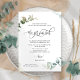Annoncez vos amis et votre famille mariages et invitations à célébrer avec cette élégante carte après le faire-part de mariage. Concevez avec la possibilité de changer le texte de "s'il vous plaît rejoignez-nous pendant que nous célébrons avec une réception de mariage décontractée" à la célébration de dîner, brunch mariage, mariage, après la fête de mariage, ou tout autre que vous aimez en changeant le texte sur la zone de texte modèle. Design unique avec de belles aquarelles, des détails de verdure eucalyptus et des éléments de calligraphie manuscrits uniques. Retournez avec des détails délicats de tache d'aquarelle, et la possibilité d'ajouter ou non une photographie au centre.