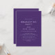 Cette invitation chic à la remise des diplômes violet est parfaite pour une fête extérieure moderne. Le design simple présente une typographie classique violet prune foncée et blanche avec une atmosphère boho rustique. Personnalisable dans n'importe quelle couleur.