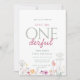 Célébrez l'anniversaire ONEderful de votre petite fille avec ce beau thème enchanté.Ce design présente un beau jardin fleuri. Personnalisez cette invitation d'anniversaire en ajoutant le nom du bébé et les détails de la fête.