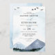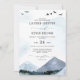 Le design présente de belles montagnes bleu ardoise et la forêt de conifères dans l'arrière - plan. Une carte idéale pour un mariage de destination ou les amoureux de la nature. D'autres articles correspondants sont disponibles dans le magasin.