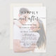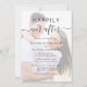 Faire-part de mariage moderne crème légère avec votre photo superposée avec votre invitation customisée, "Happily Ever After" écrit dans un mélange de typographie simple et un script chic avec des swashes et vos détails d'invitation dans une typographie élégante.