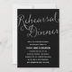 Cet élégant invitation de dîner de répétition présente de magnifiques calligraphies, un faux film argenté brillant et un arrière - plan noir chic.