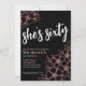 Chic Soixante Black Rose Gold 60th Birthday Party Invitation. Une invitation amusante mais élégante à la fête du 60e anniversaire avec roses girly or, fleurs noires et blanches pour les jeunes de coeur. Veuillez noter qu'il n'y a pas de brillant ou de feuille d'or, il s'agit simplement d'une couleur. Un motif de fleurs ludique encadre une typographie de script "she's soixante" mélangée avec une police serif plus classique. Célébrez soixante ans de vie avec ce magnifique design botanique. La partie amusante est que vous pouvez changer TOUTES les couleurs! ! Vous pouvez non seulement modifier les couleurs et la police arrière - plans, mais vous pouvez également modifier les lignes des fleurs. Disponible sous forme d'invitation imprimée ou d'invitation numérique téléchargeable que vous pouvez envoyer par e-mail ou avoir imprimé localement !