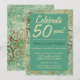 Invitation chic et élégante verte avec une touche dorée pour célébrer un anniversaire de mariage. Personnalisez cette invitation pour qu'elle convienne à votre célébration.
